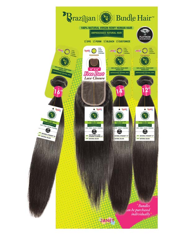 Janet Collection Brazilian Straight 3Pcs + 4X4 Free Part