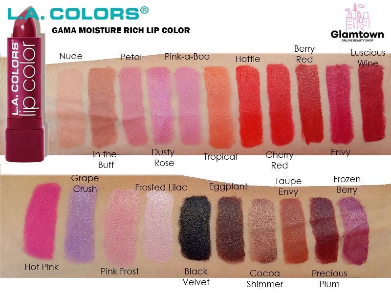 | Colors | BlackVelvet, CherryRed, EggPlant, BerryRed, PurplePassion, Flower, Strawberry, GoingSteady, CocoaShimmer, PreciousPlum, Brick, Tropical, RelentlessRed, CaramelCream, PinkFrost, FrostedLilac, Petal, BerryIce, InTheBuff, GrapeCrush, TaupeEnvy, StayPutPlum, DustyRose, RedTango, HotPink, ForeverFuchsia, Nude, BrownSugar, FrozenBerry, Hottie, PinkParfait, Maroon, Dream |