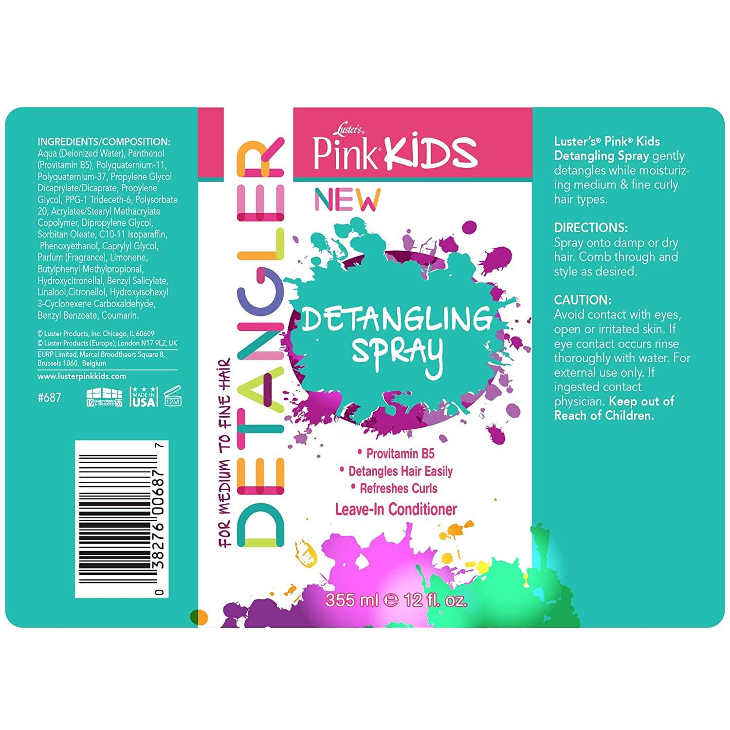 Tags: Detangling spray, Kids, Luster's Pink