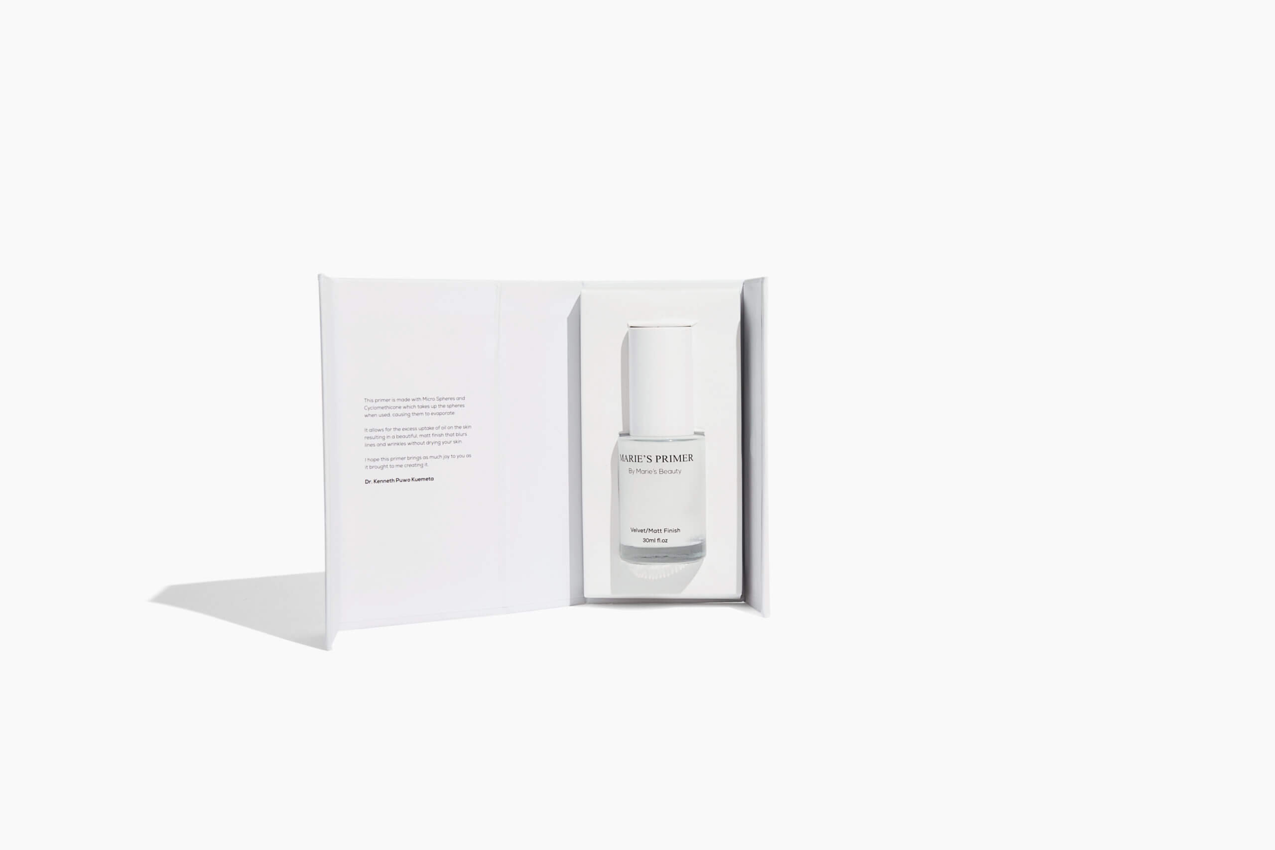 This Primer is made with. Micro Spheres and cyclomethicone which takes up the spheres when used, causing them to evaporate. This allows for the excess uptake of oil on the skin resulting in a beautiful matte finish that blurs out lines and wrinkles without drying your skin.